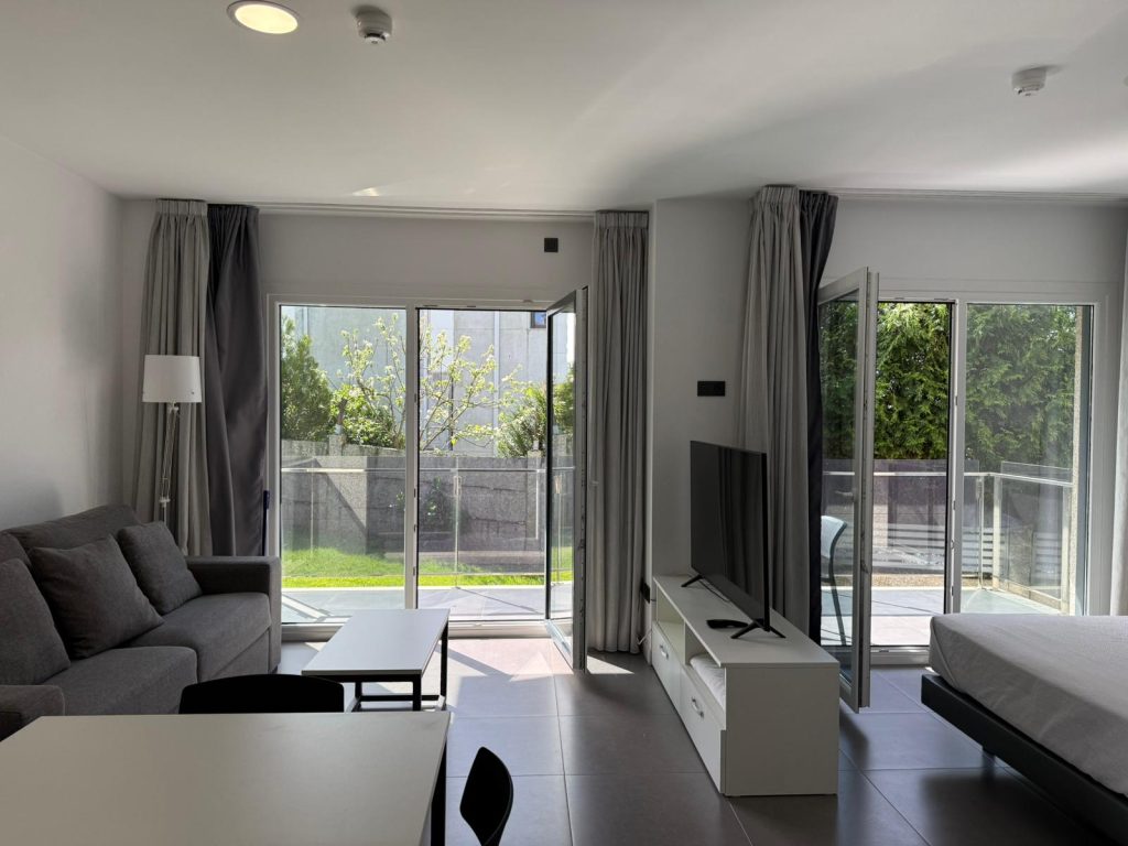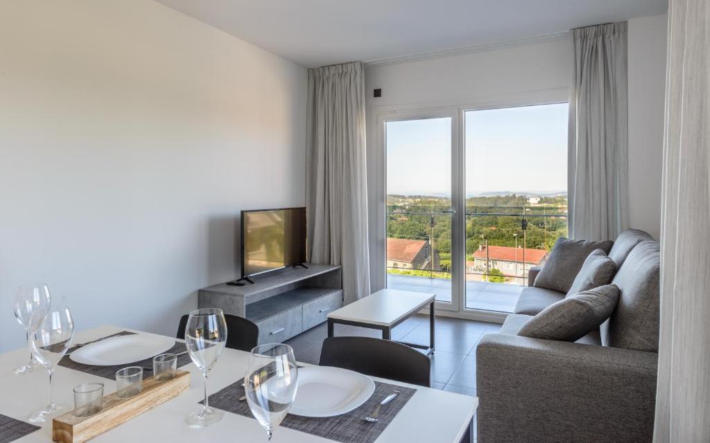 Los Apartamentos Onza Mar están situados en un precioso enclave con vistas al mar y a la montaña. Es una zona tranquila y muy próxima al centro de Sanxenxo para disfrutar de sus vacaciones en compañía de su pareja, su familia o sus amigos. Los apartamentos están completamente nuevos, ya que son de reciente construcción. Tanto los apartamentos de 1 dormitorio como los de 2 domitorios cuentan con mucha luz y una bonita terraza. Para su comodidad, hemos incluido horno, microondas, cafetera, exprimidor, batidora, secador, plancha y mesa de planchado, etc… Se sentirá como en su propia casa.